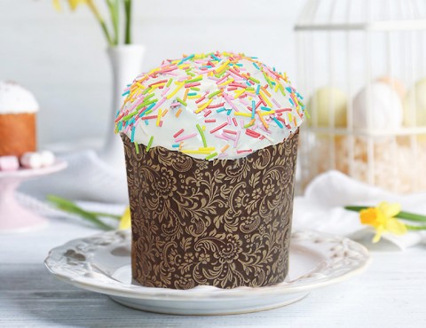 Мука в/с, сахар, маргарин, цукаты, яйца, соль, дрожжи прессованные, ванилин, глазурь кондитерская, посыпка.