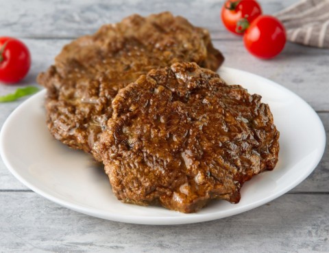 Корейка свиная, яйцо, приправа орегано, сыр «пармезан», соль, перец черный молотый, сухари панировочные, масло подсолнечное.