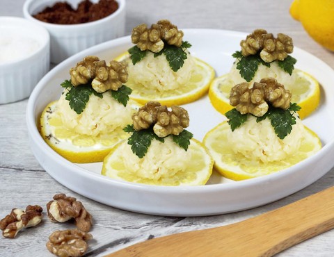 Лимон, сыр, орех грецкий, сахар, майонез, зелень петрушки.