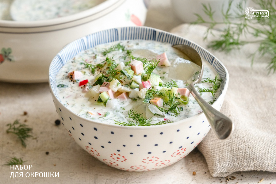В честь праздника супермаркет «Сытная площадь» предлагает порадовать себя, семью и друзей тарелкой-другой вкуснейшей окрошки. Для любителей постных блюд приготовлена отдельная смесь. В качестве жидкой основы можете выбрать ту, которую предпочитаете остальным: домашний квас, минеральная вода, кефир, айран, томатный сок, свекольный бульон, огуречный рассол и др. А для придания пикантности добавьте горчицу, уксус, хрен, перец или сметану. Сделайте вкусным этот день!